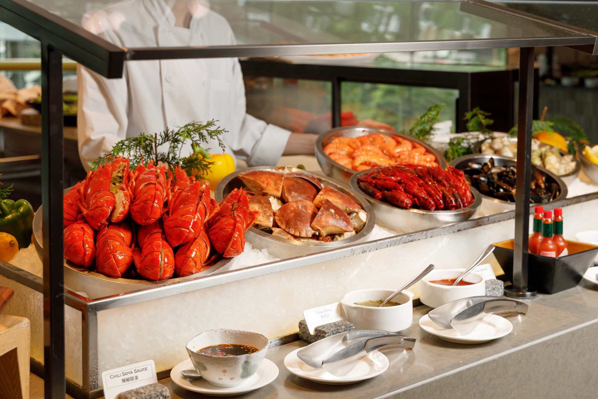 Café East推出「环球海鲜盛宴」自助晚餐,由厨师精心搜罗各国海鲜,配合各式各样的烹调方法炮制出一道道鲜味十足的佳肴,带领食客的味蕾尝尽海鲜滋味。